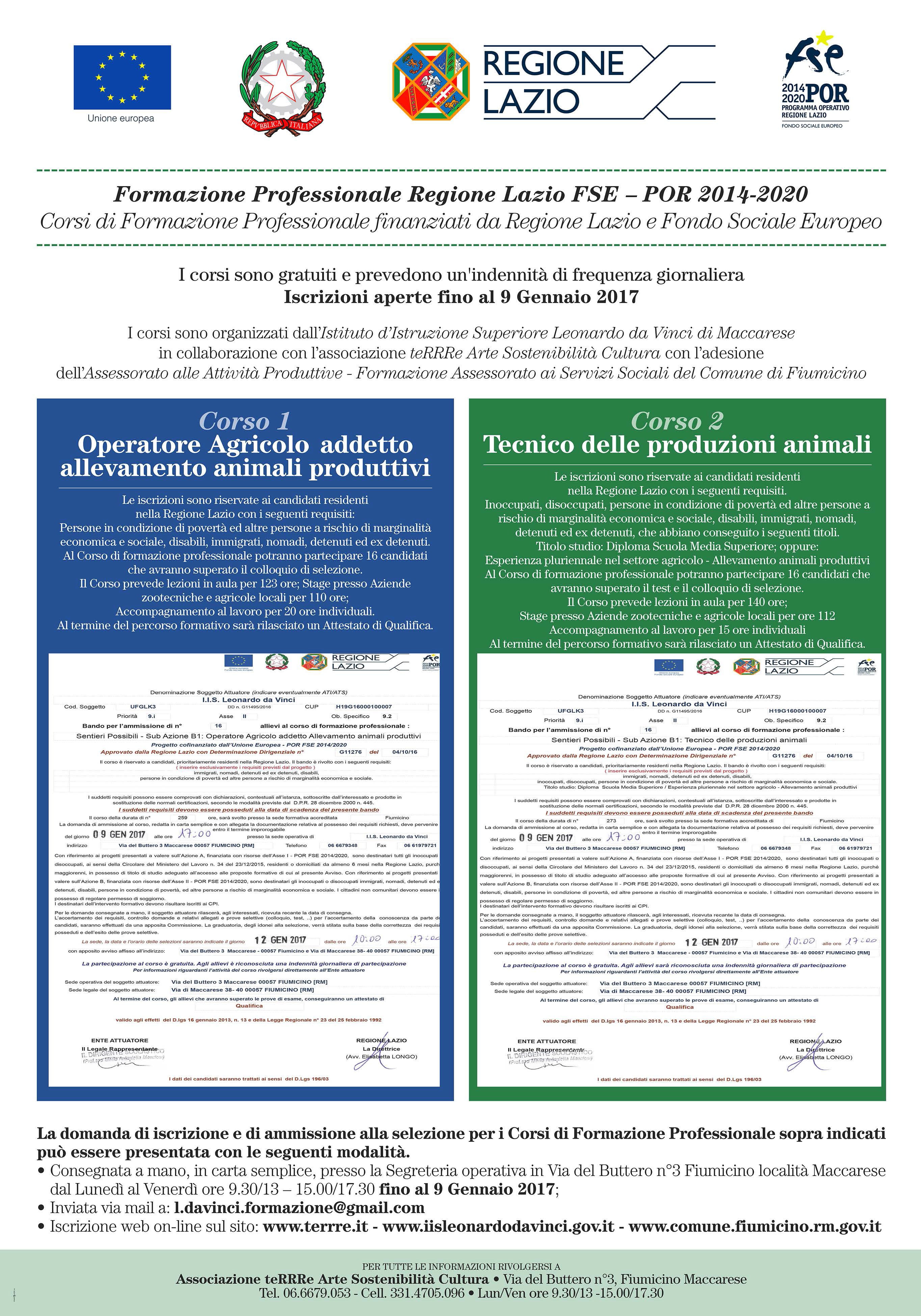Corsi di Formazione Professionale Ð POR FSE 2014/2020 Regione Lazio.